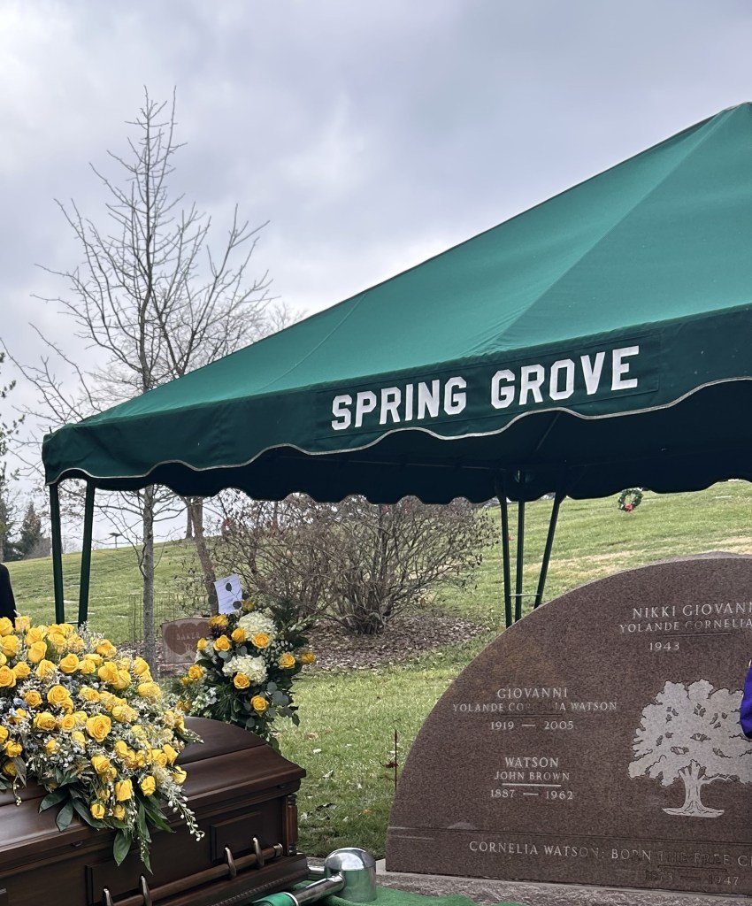On Dec.19, friends, family, fans and community members gathered at Spring Grove Cemetery to say their final goodbyes to Nikki Giovanni. The public graveside ceremony took place in her hometown of Cincinnati, Ohio, welcoming childhood friends and close relatives to commemorate the life of the legendary author.
